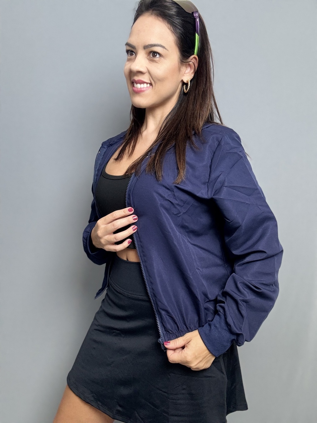 Descubra o Corta Vento Tactel, confeccionado em tecido tactel levemente impermeável, ideal para aqueles dias mais frescos. Com um modelo mais slim e do tipo cropped, esta peça é perfeita para compor looks esportivos e casuais com um toque de elegância.